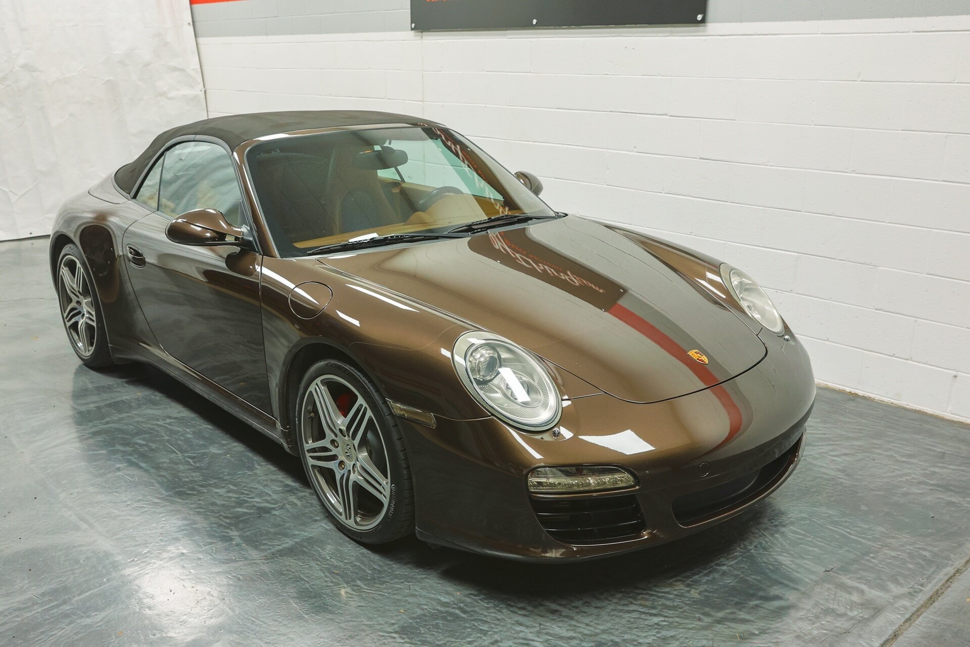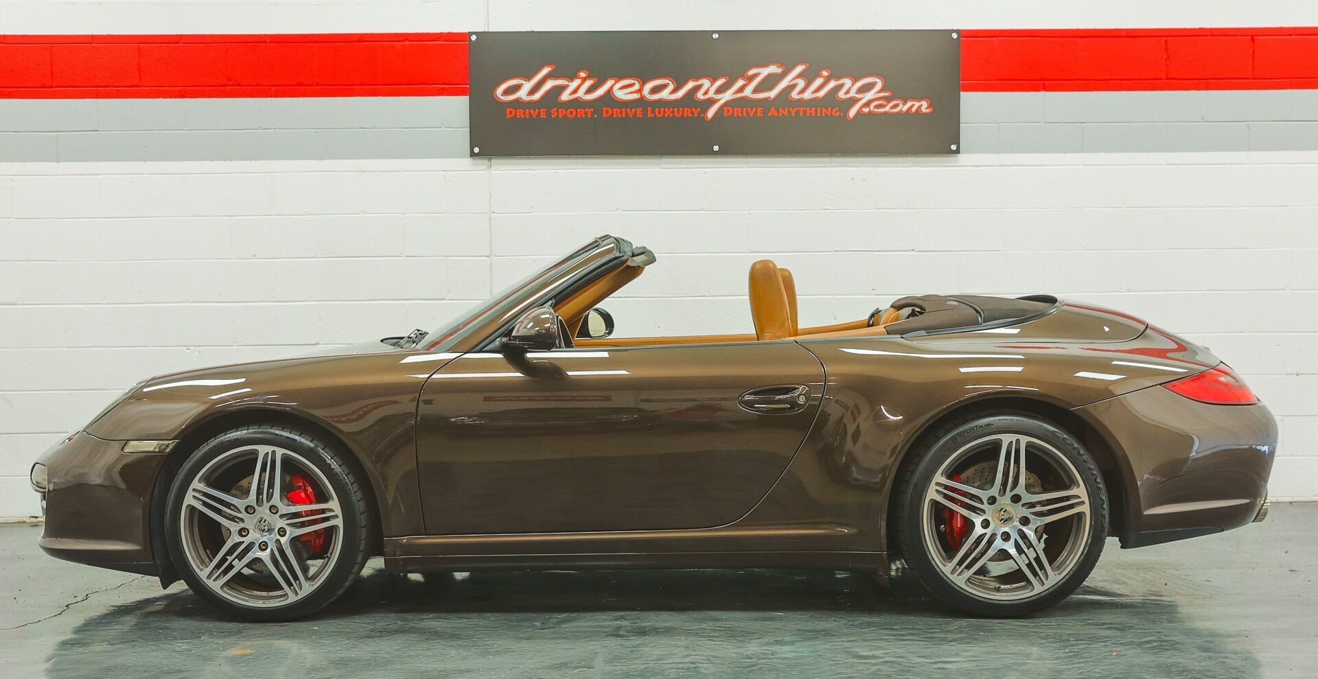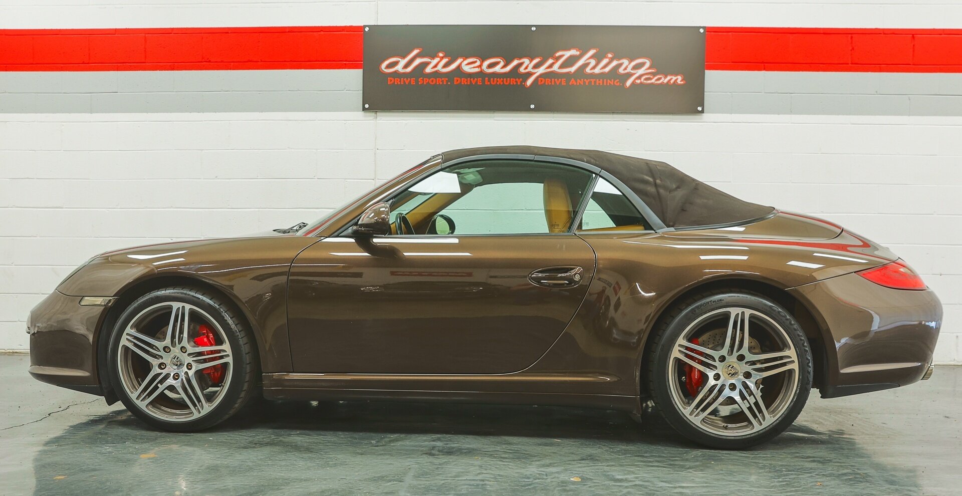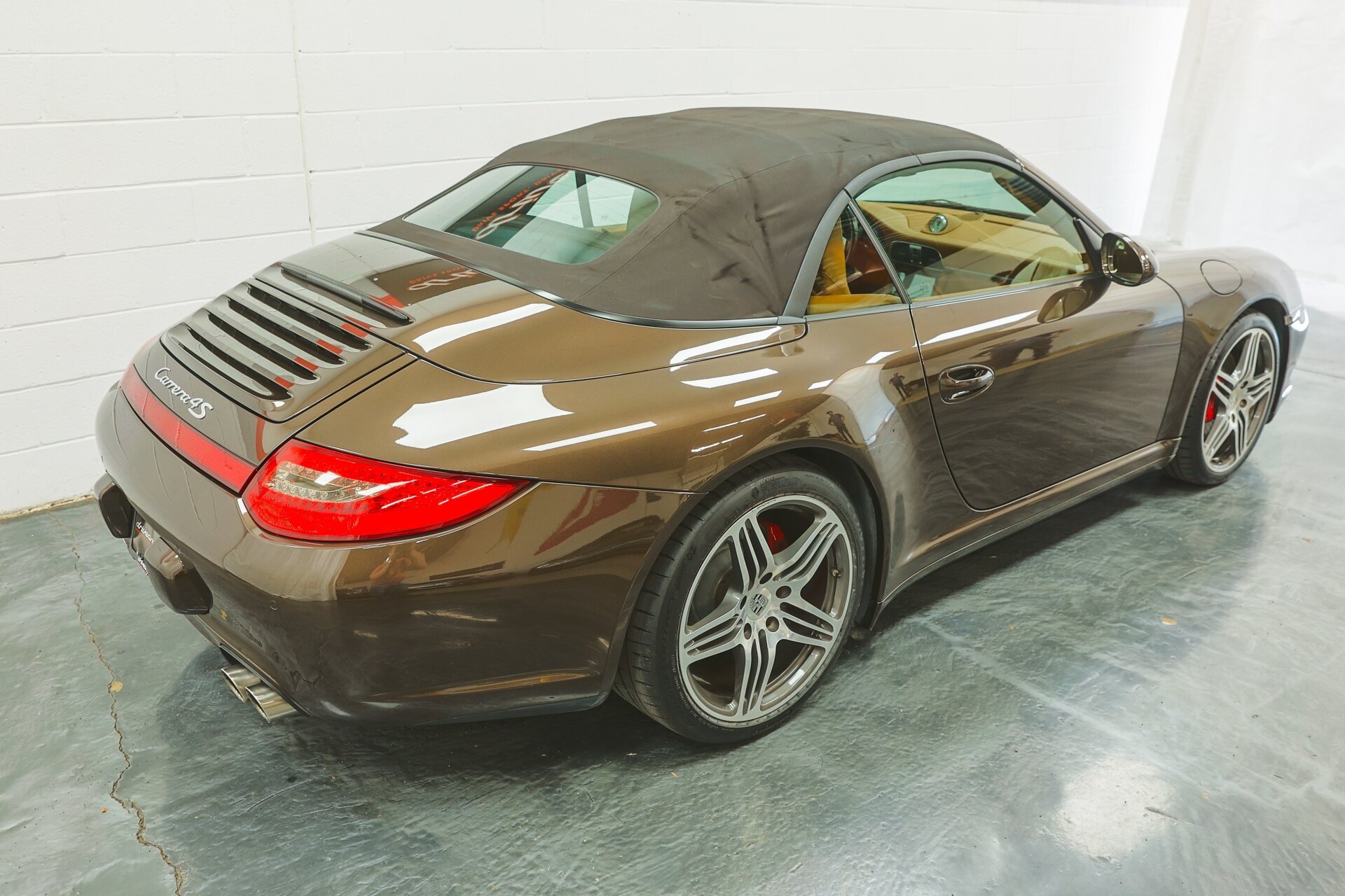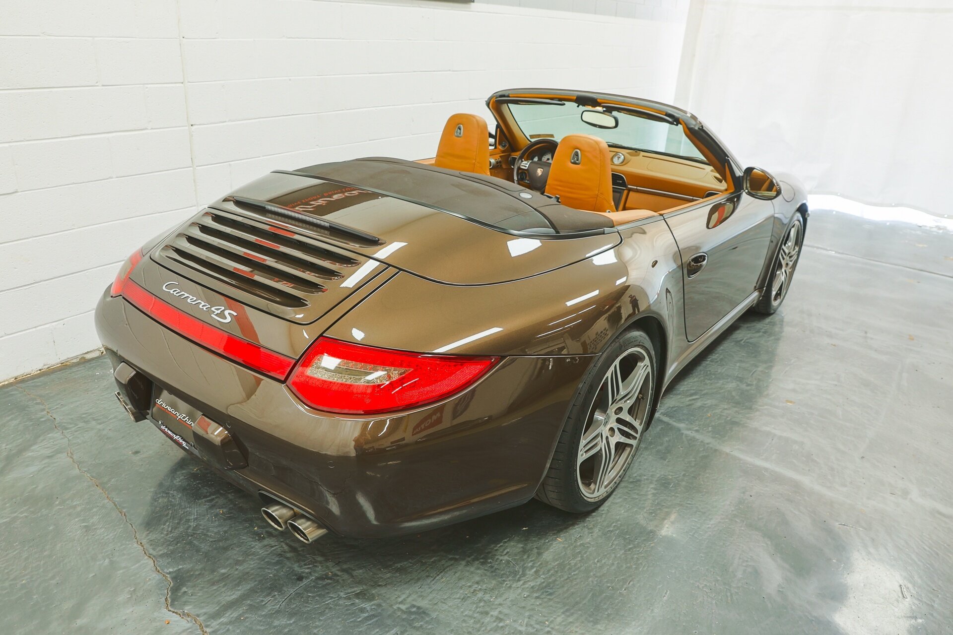 '09 CARRERA 4S CAB 42K MI 6 SPEED 1 OF 1 FACTORY BUILD MACADAMIA METALLIC ON NATURAL BROWN ROOF IN COCOA DEVIATING BROWN CARPET FRONT & REAR SEAT INLAYS STEERING WHEEL DEV COLOR AIRBAG MODULE IN DEV COLOR GEAR & HANDBRAKE IN ALUMINUM 19" TURBO WHEELS TUBI EXHAUST
