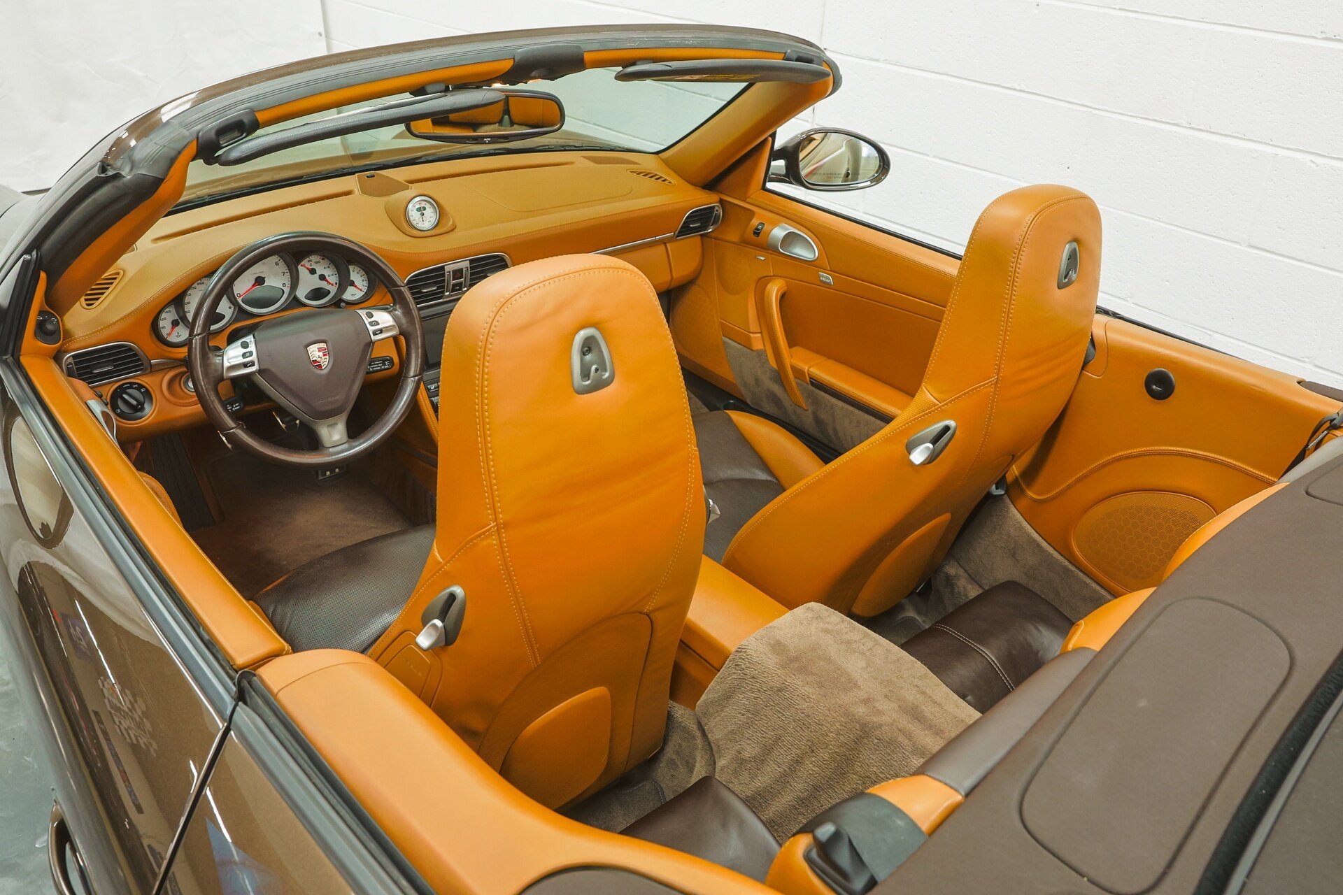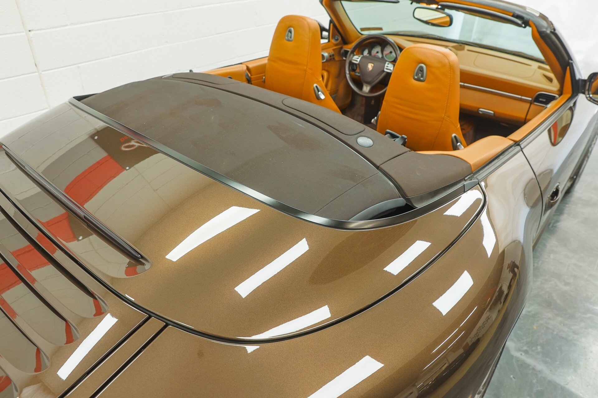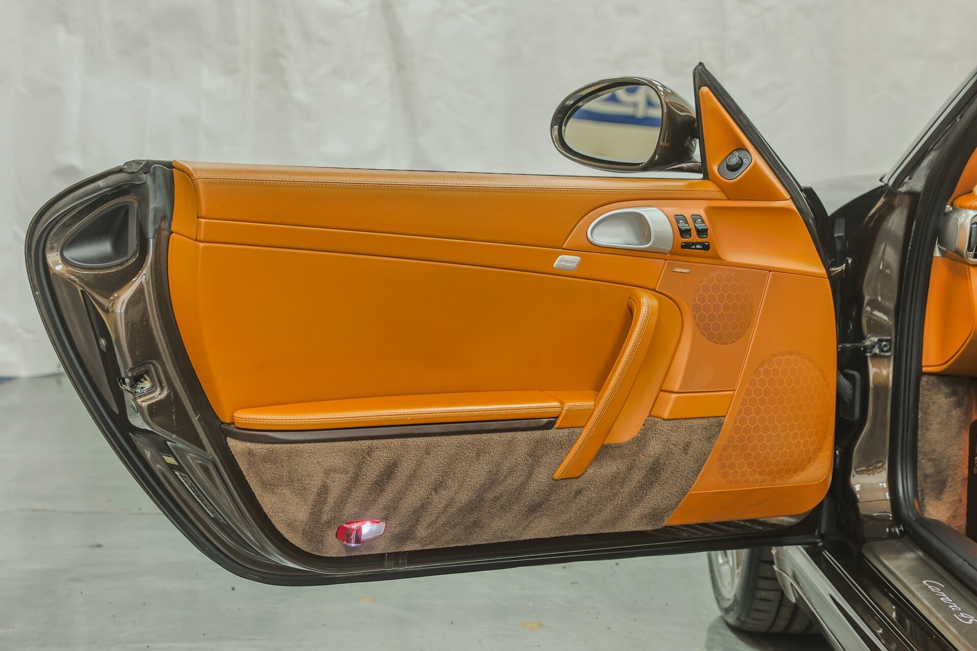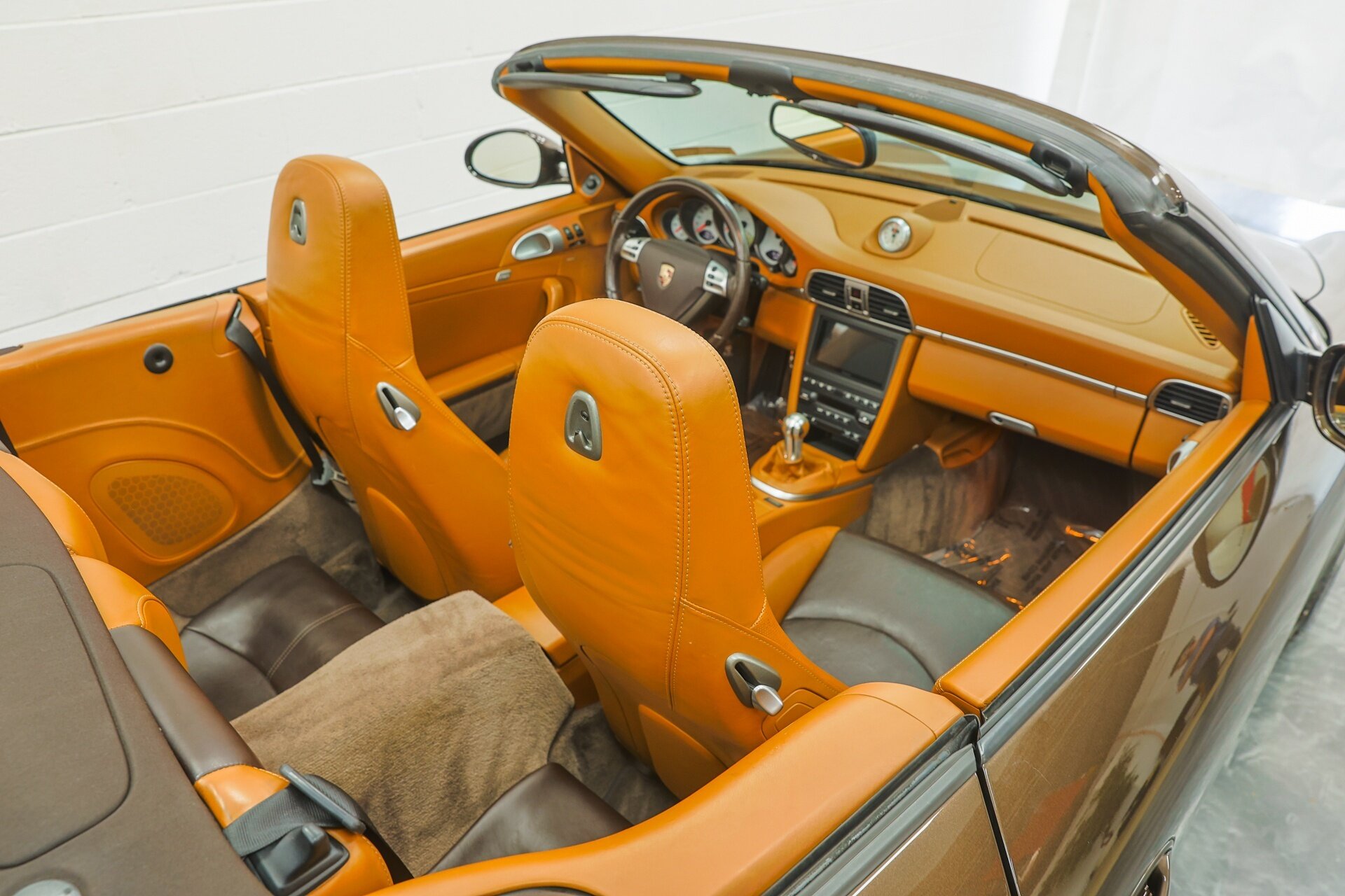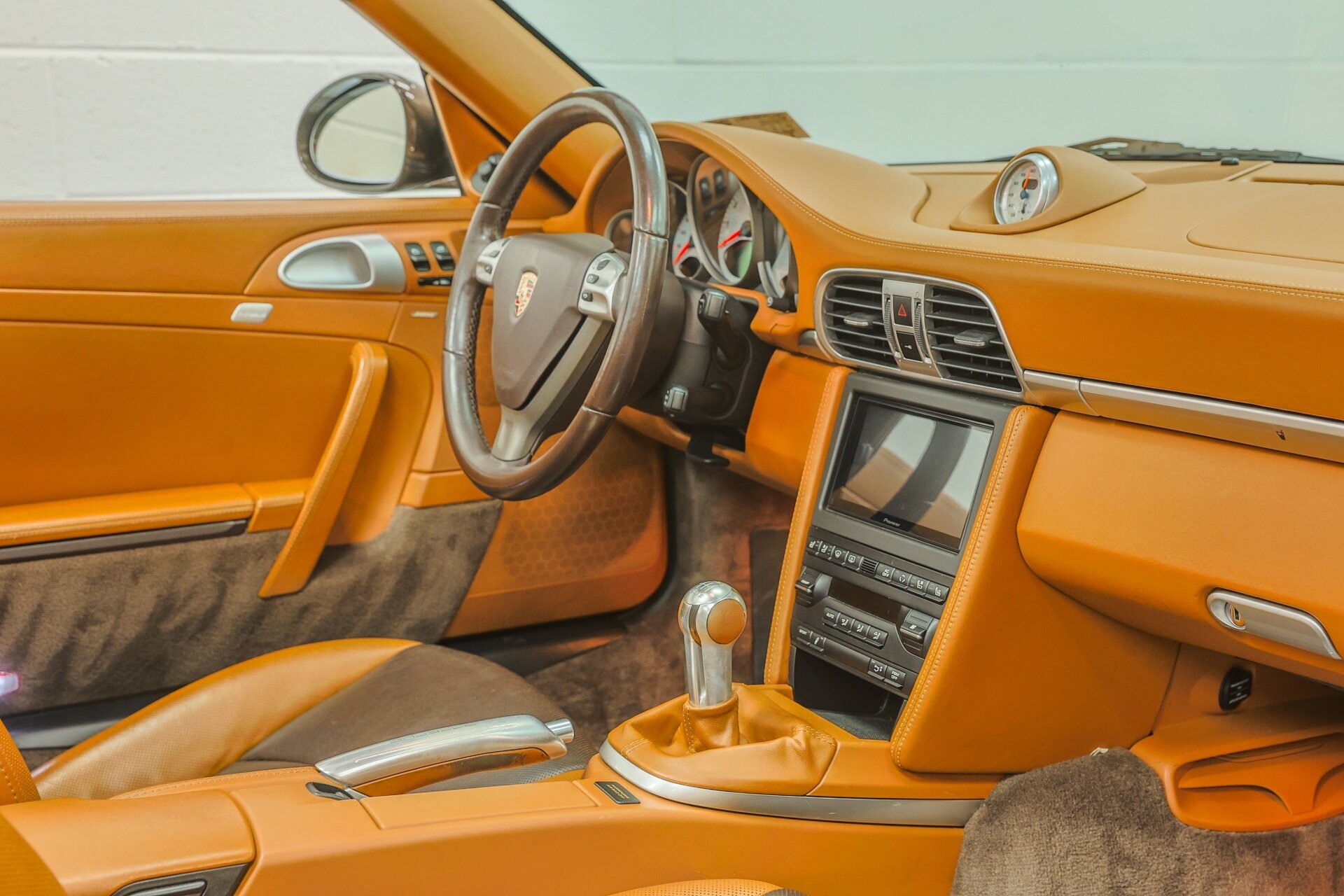 '09 CARRERA 4S CAB 42K MI 6 SPEED 1 OF 1 FACTORY BUILD MACADAMIA METALLIC ON NATURAL BROWN ROOF IN COCOA DEVIATING BROWN CARPET FRONT & REAR SEAT INLAYS STEERING WHEEL DEV COLOR AIRBAG MODULE IN DEV COLOR GEAR & HANDBRAKE IN ALUMINUM 19" TURBO WHEELS TUBI EXHAUST