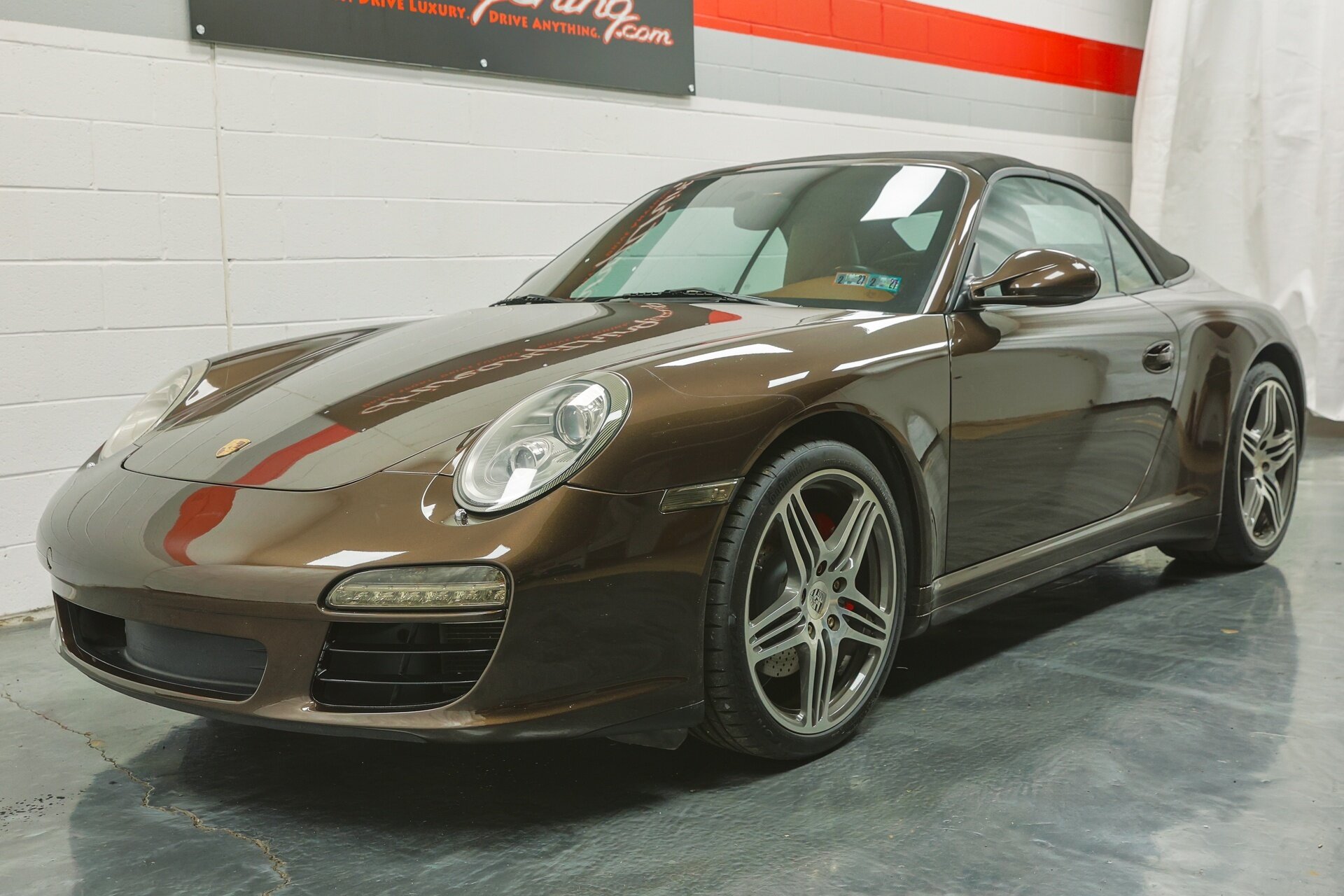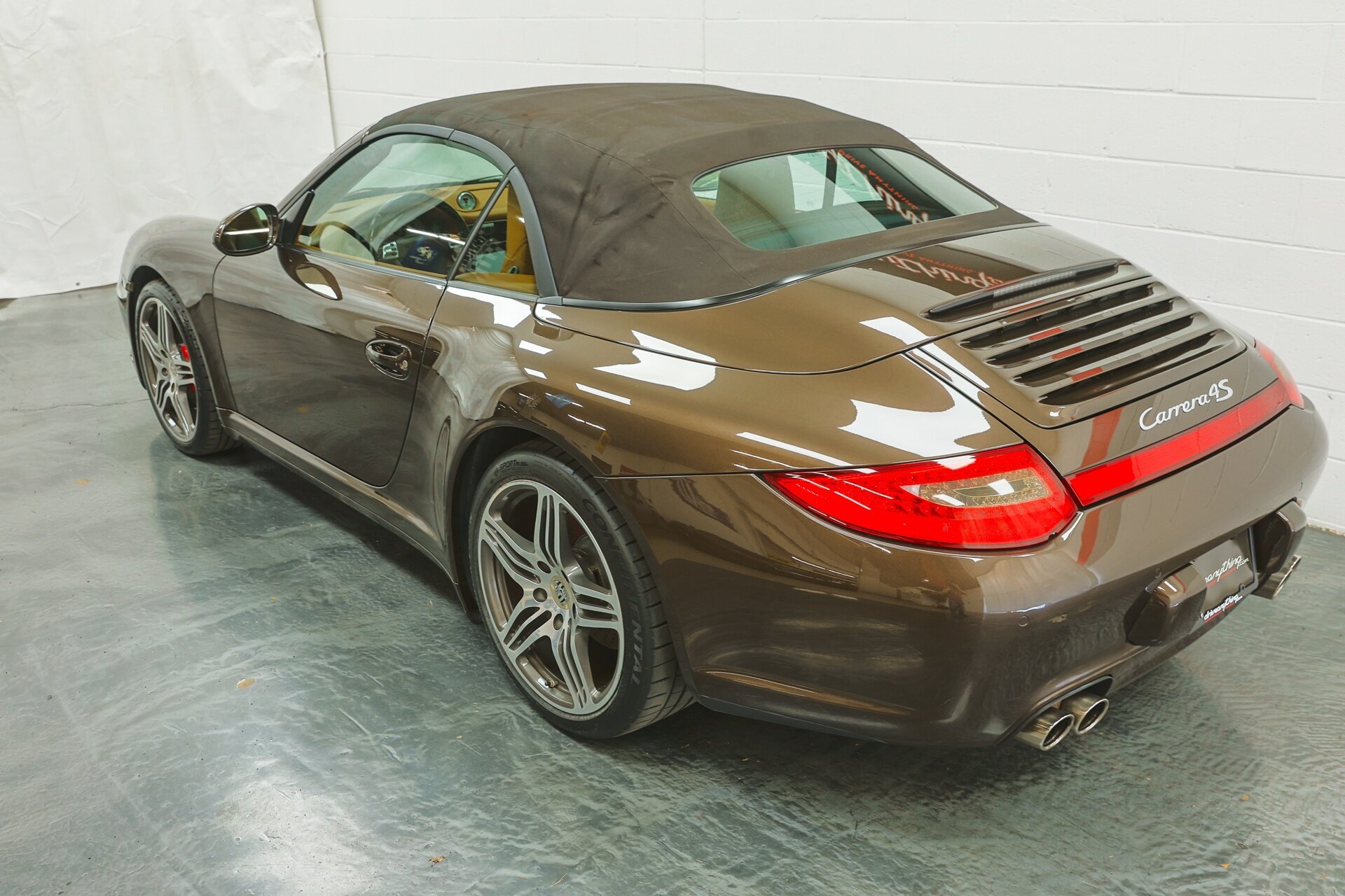 Absolutely stunning 2009 Porsche 911 Carrera 4S Cabriolet with just 42517 miles. Macadamia Metallic on Natural Brown Leather with Roof in Cocoa, it is one of Porsche's more unique attractive color combinations.