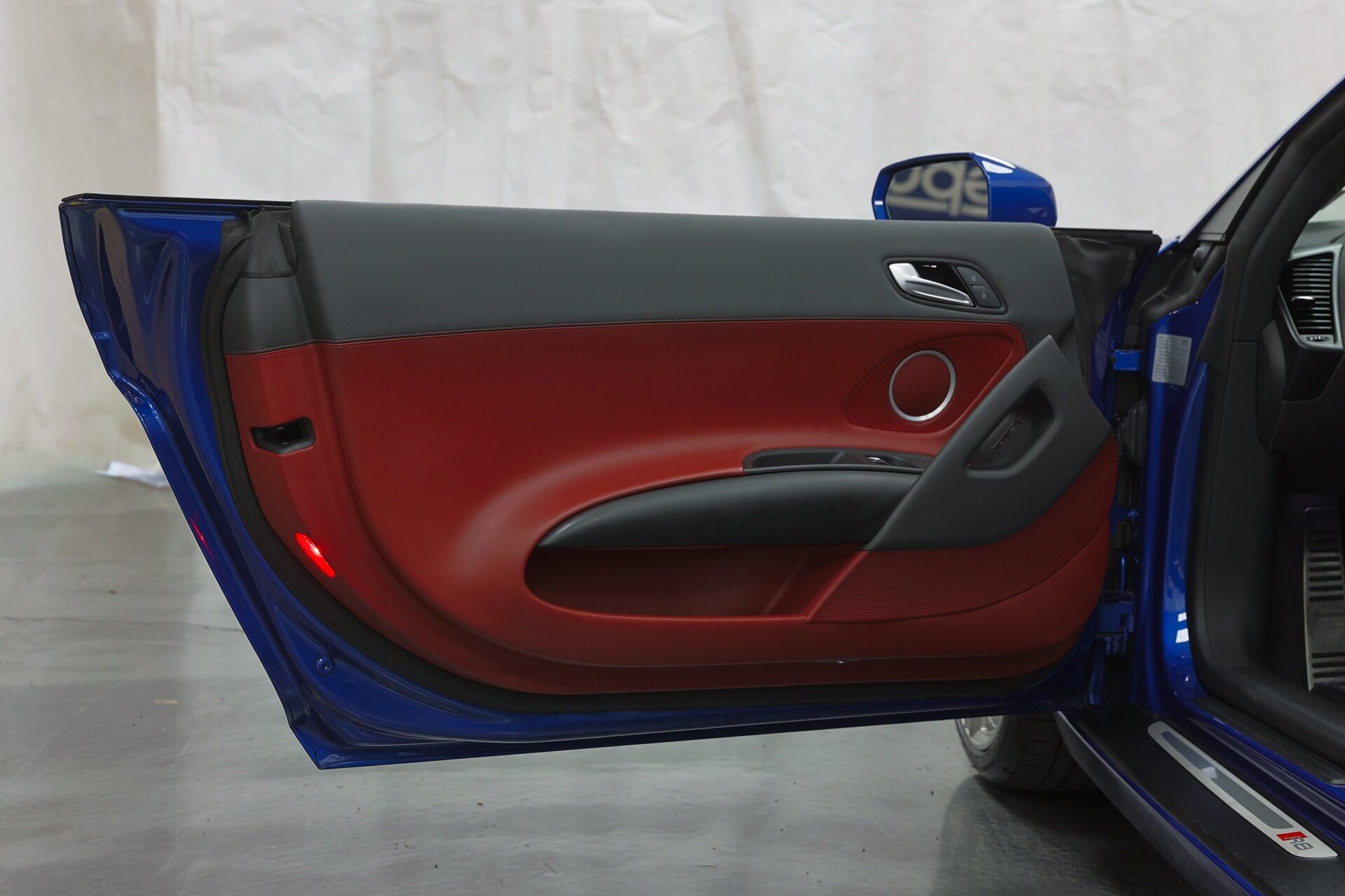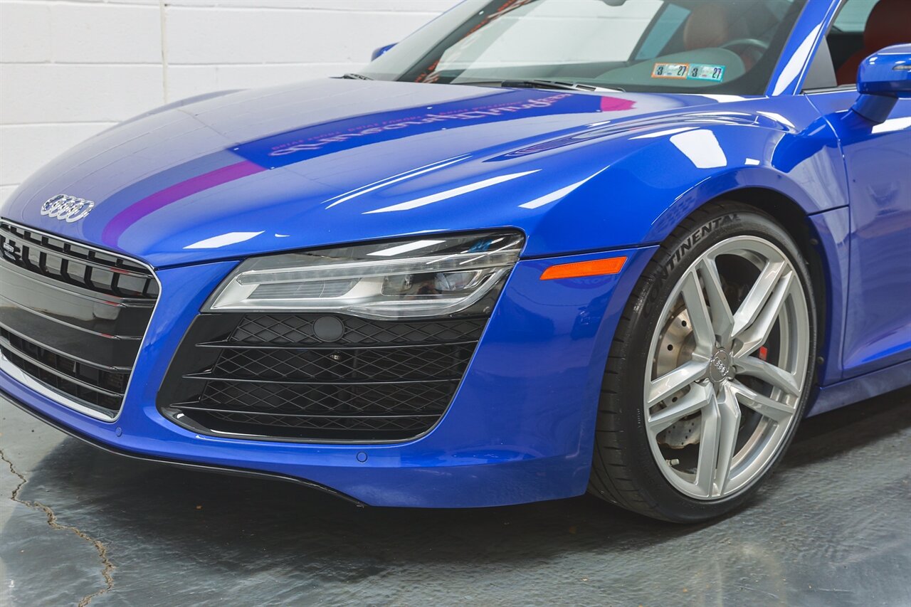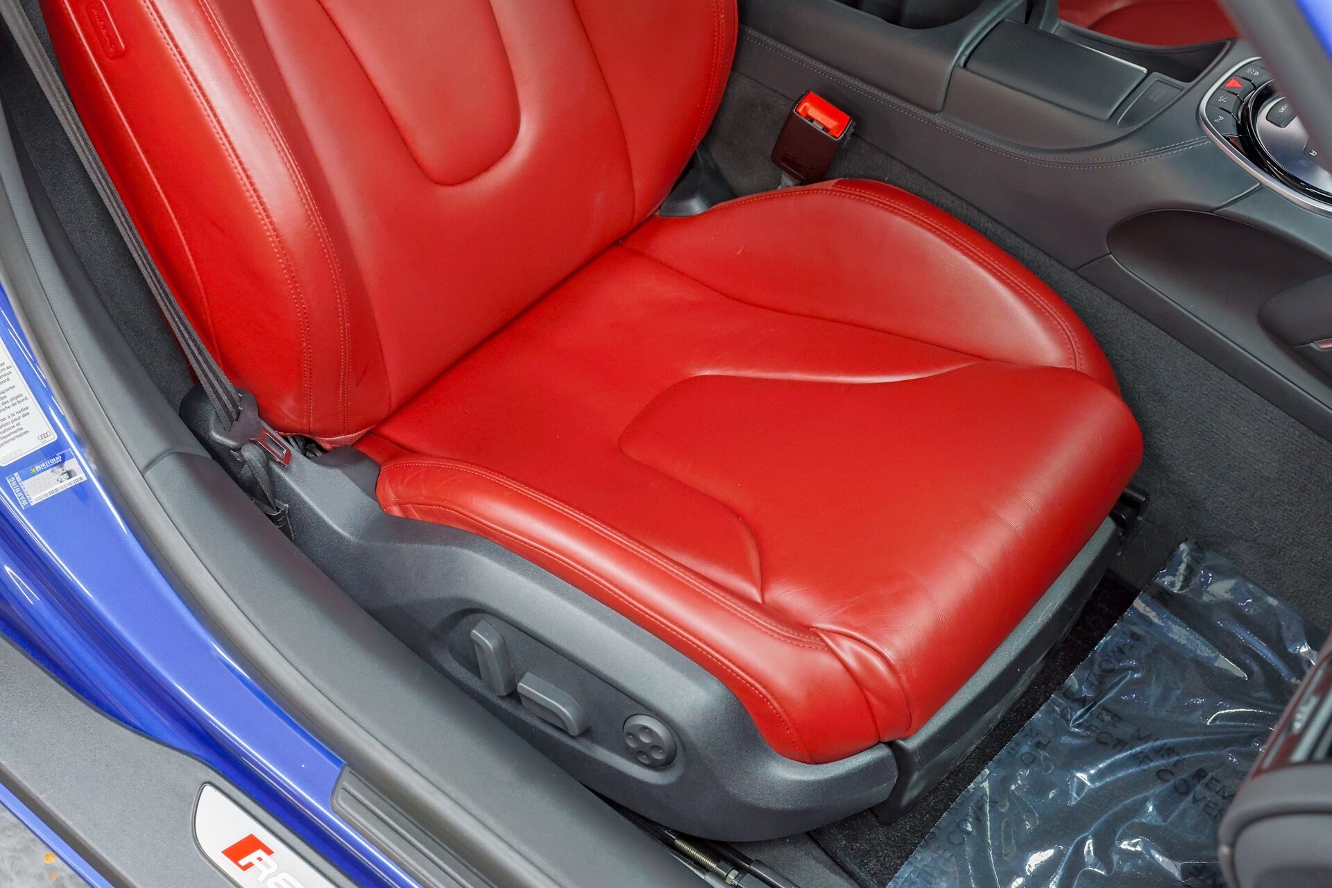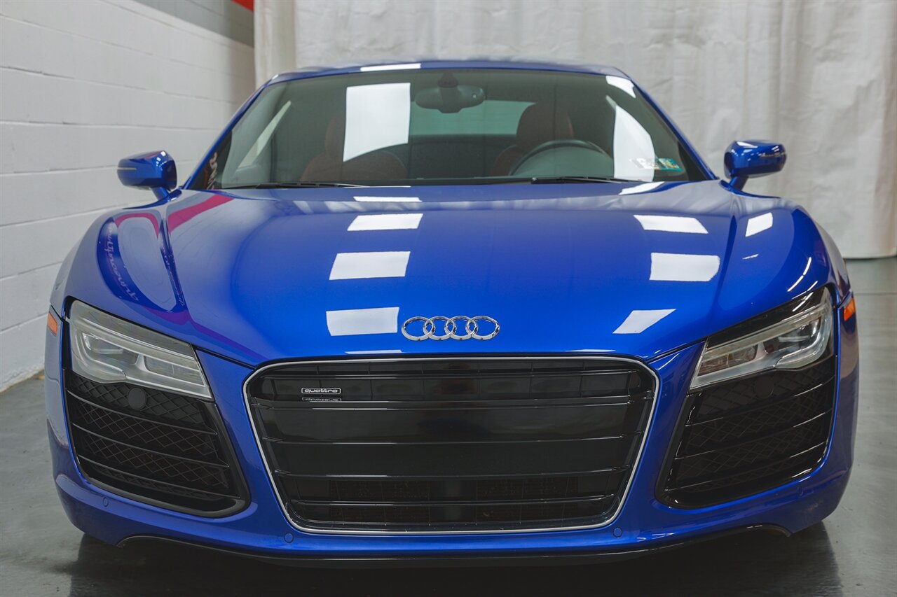 Absolutely gorgeous & extremely rare 2015 Audi R8 4.2 Coupe Quattro with just 37667 miles. Sepang Blue Pearl Effect on Red Nappa Leather, it is one of the most attractive color combinations available! The paint is in excellent condition and it is apparent that this car was garaged and meticulously-maintained.