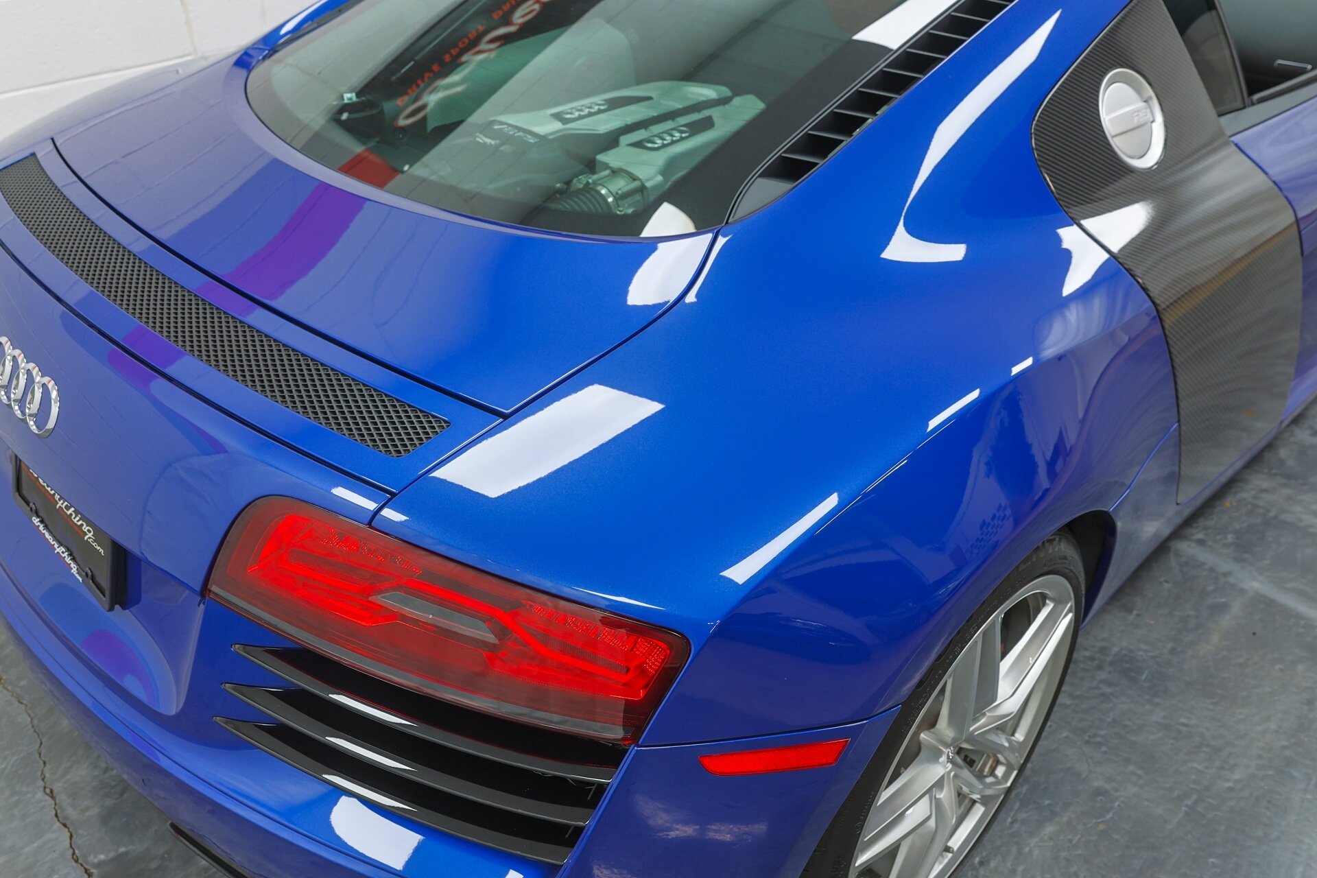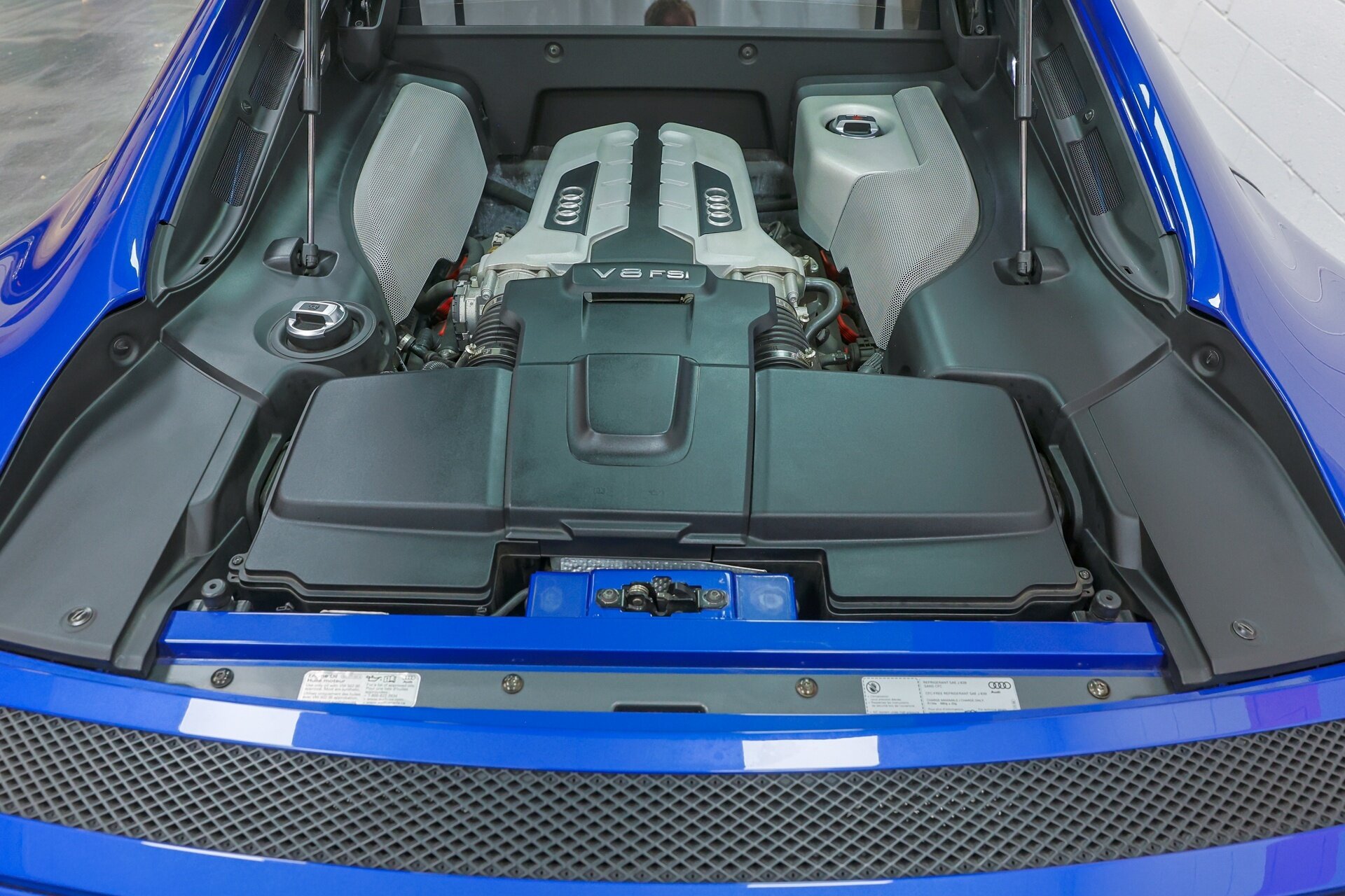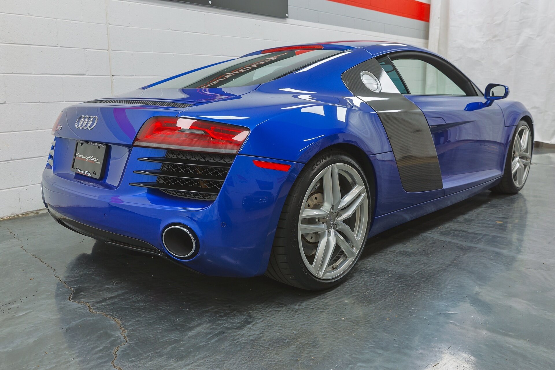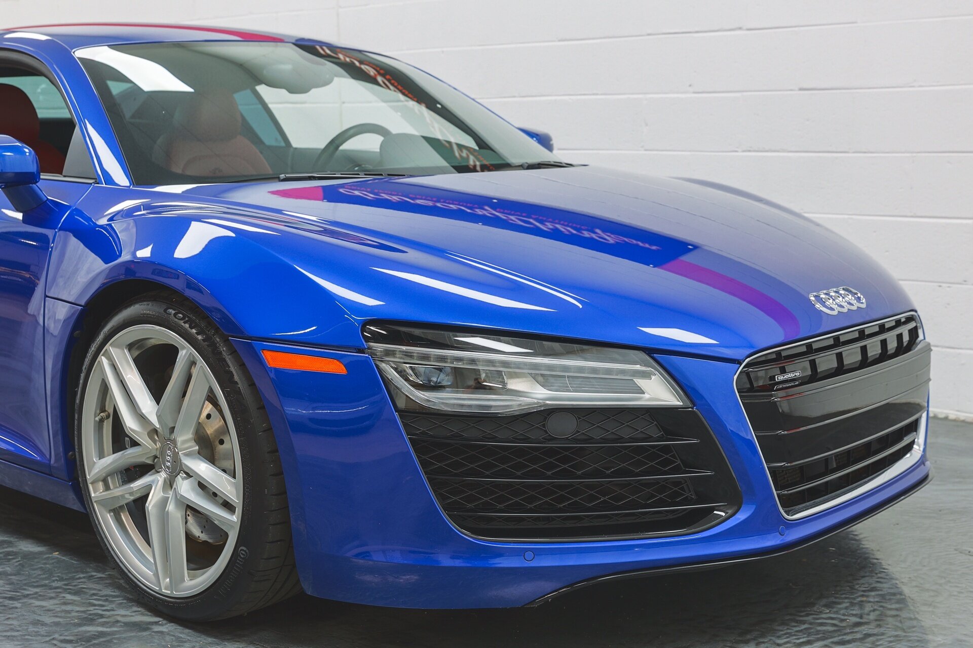Absolutely gorgeous & extremely rare 2015 Audi R8 4.2 Coupe Quattro with just 37667 miles. Sepang Blue Pearl Effect on Red Nappa Leather, it is one of the most attractive color combinations available! The paint is in excellent condition and it is apparent that this car was garaged and meticulously-maintained.