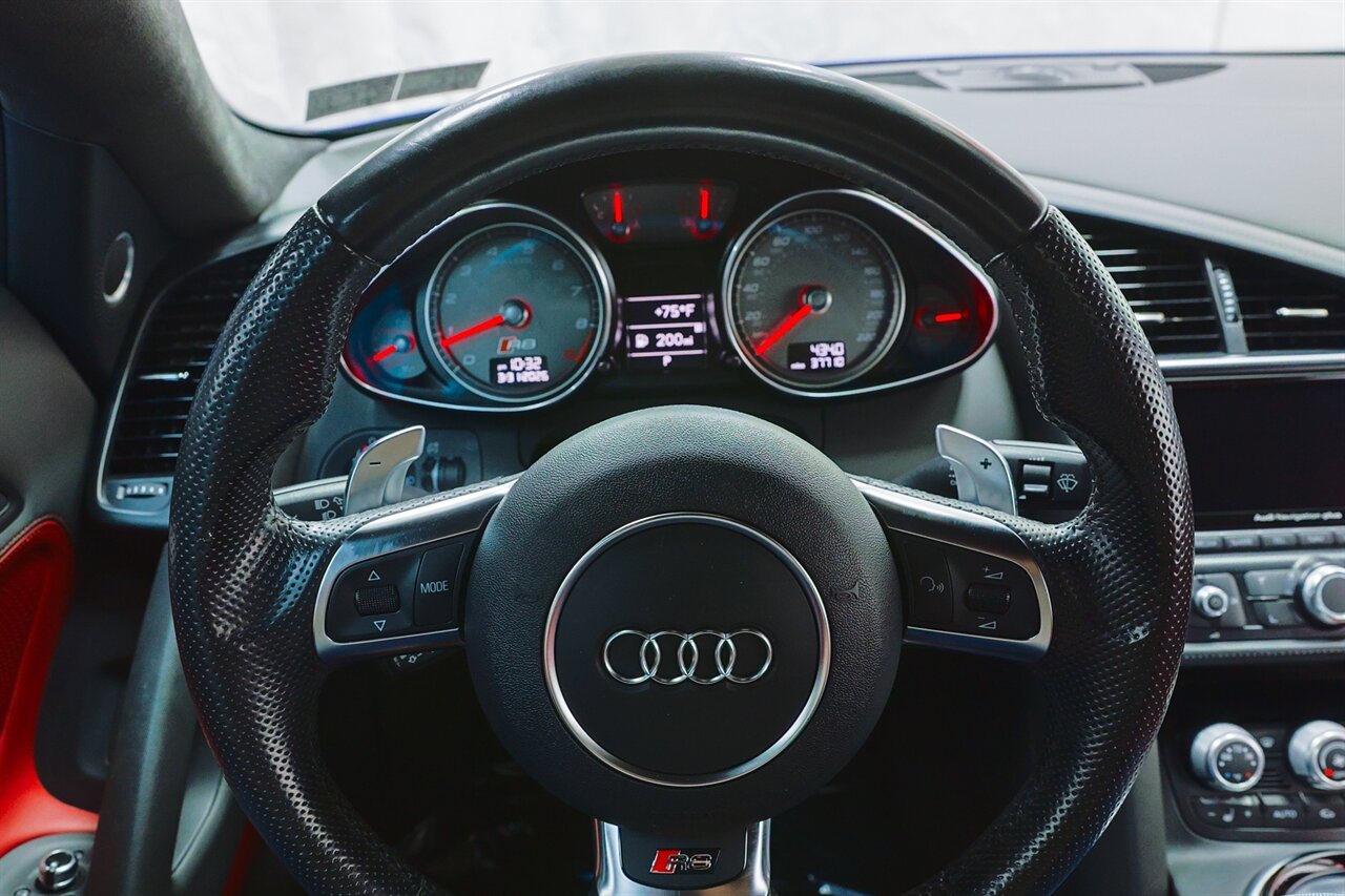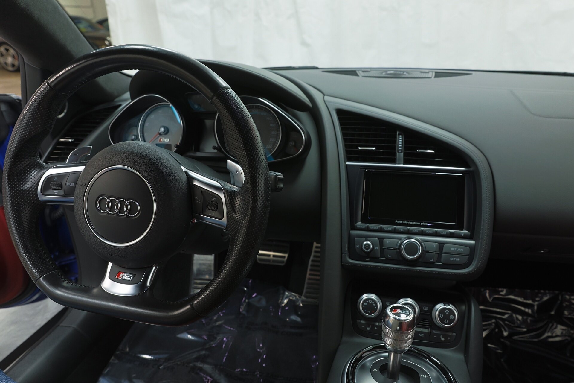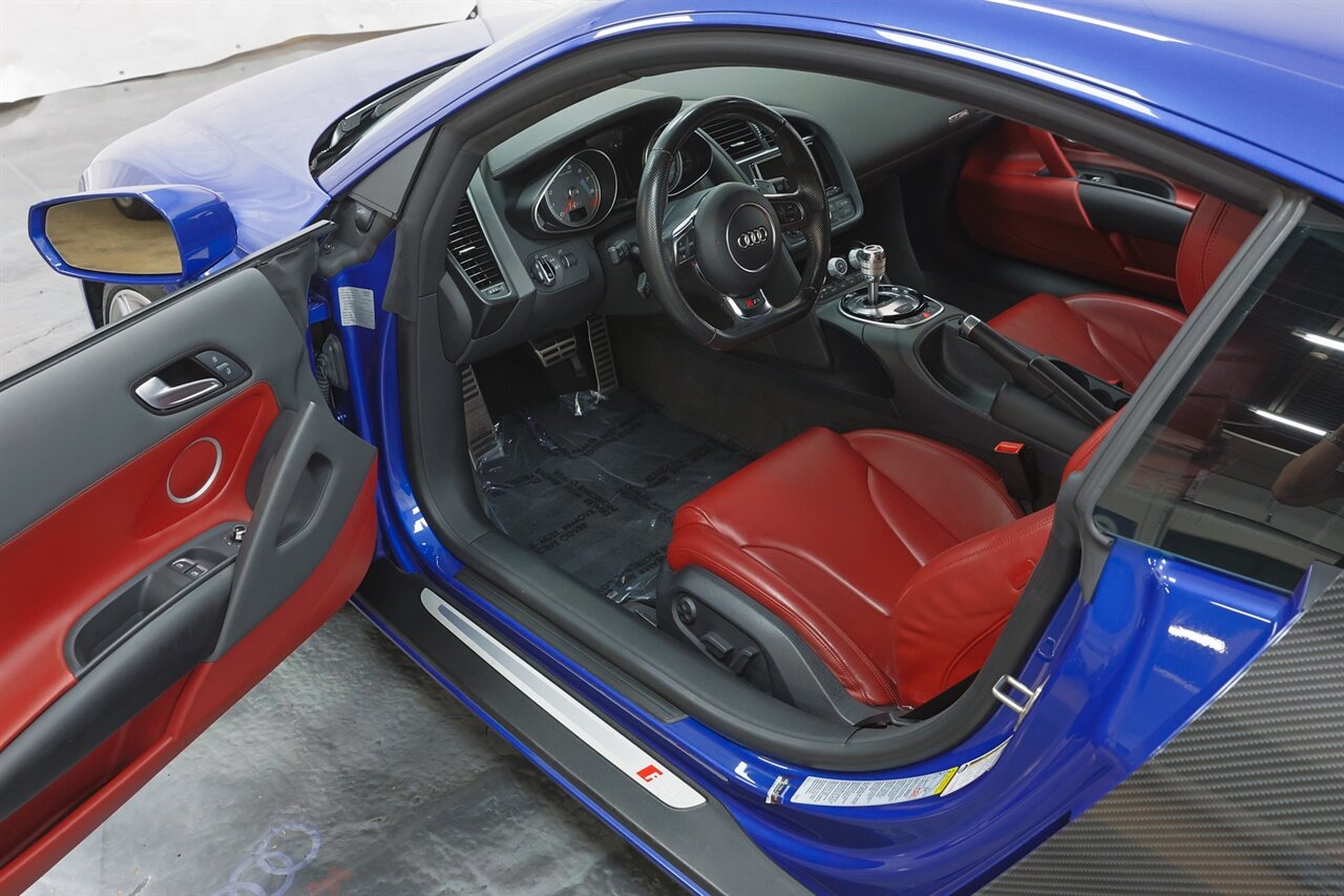 '15 R8 4.2 V8 COUPE RARE SEPANG BLUE ON RED! 37K MILES! FRESH SERVICE SINCE NEW ENHANCE LEATHER PACKAGE, NAVIGATION HEATED SEATS BLUETOOTH