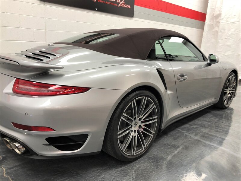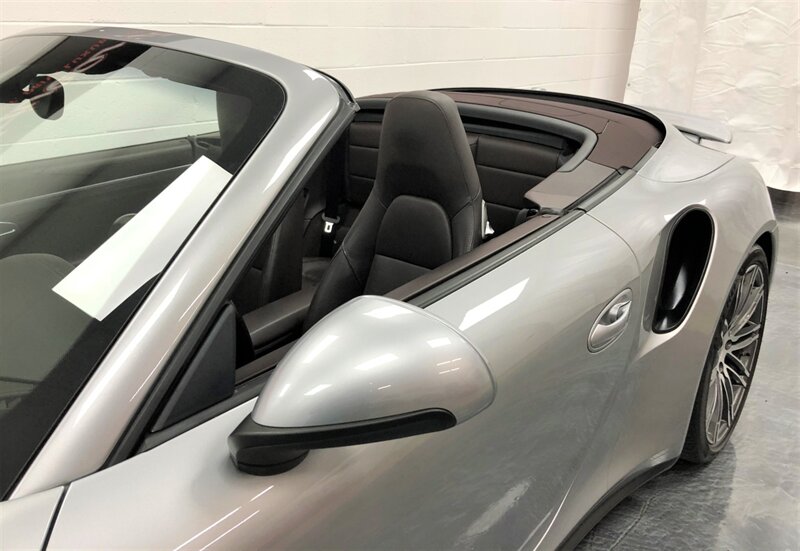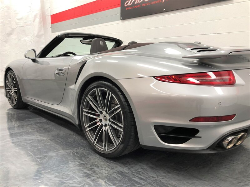 Absolutely stunning 2015 Porsche 911 (991) Turbo Cabriolet with just 28509 miles . Special order GT Silver Metallic (Carrera GT color) on Espresso Natural full leather, it is one of Porsche's most attractive color combinations.