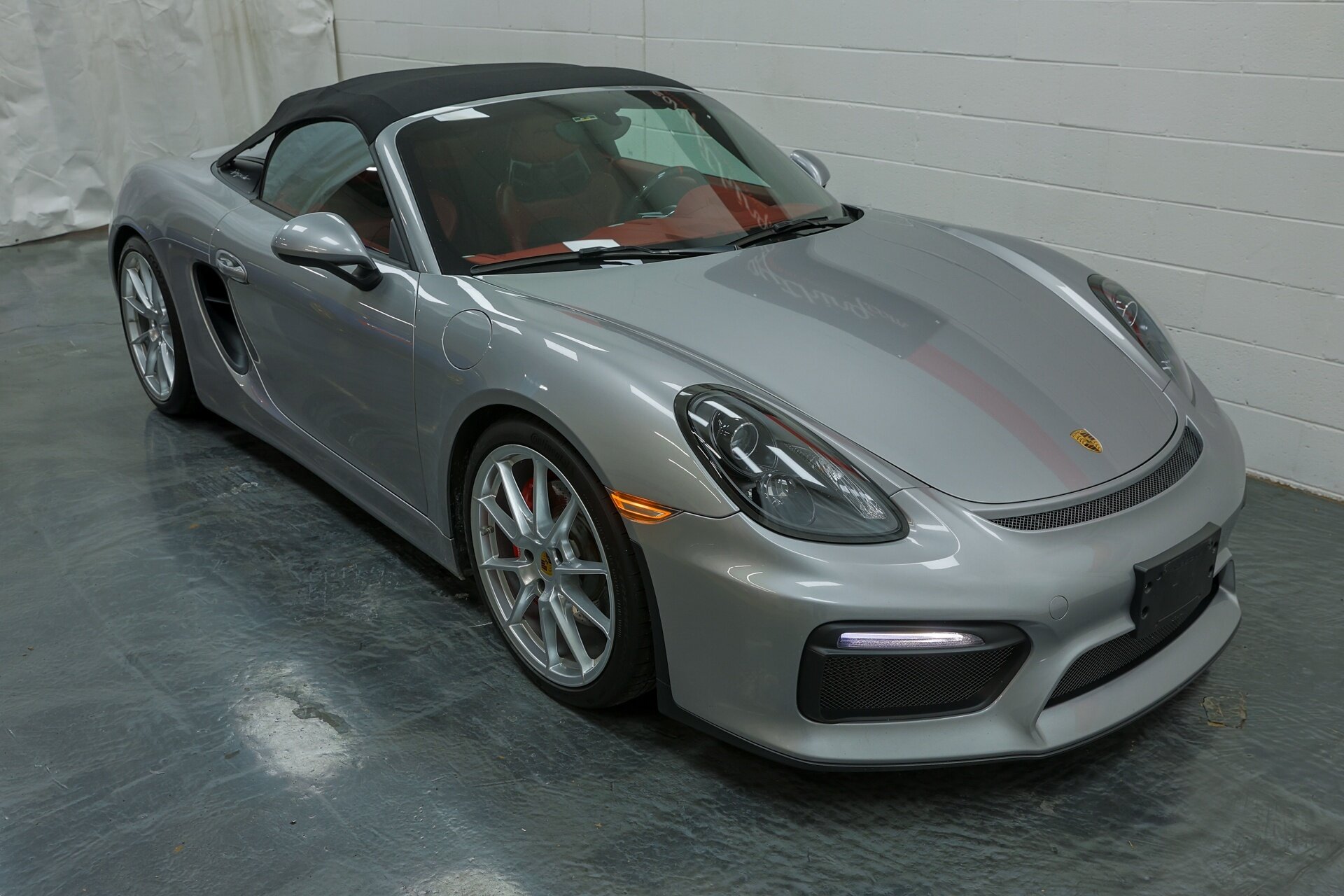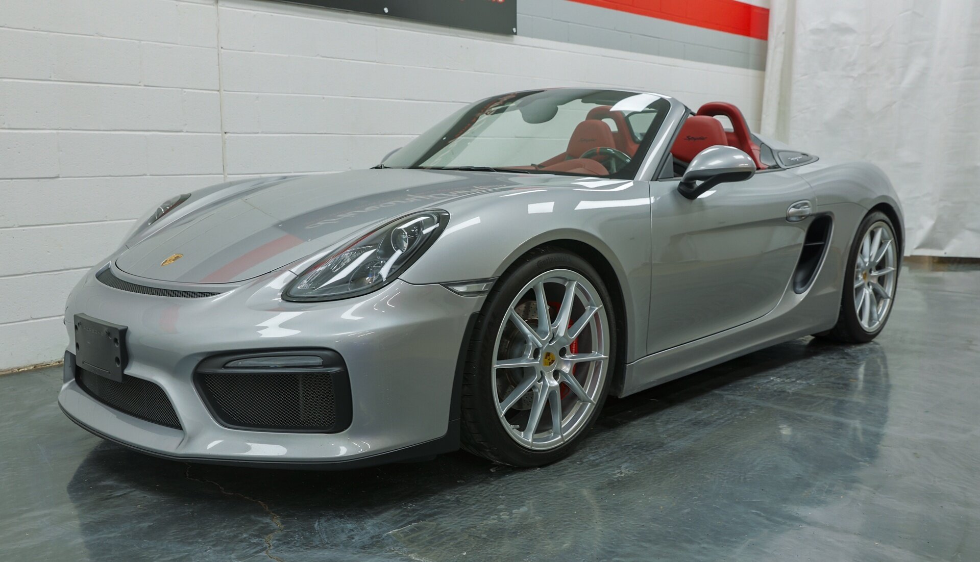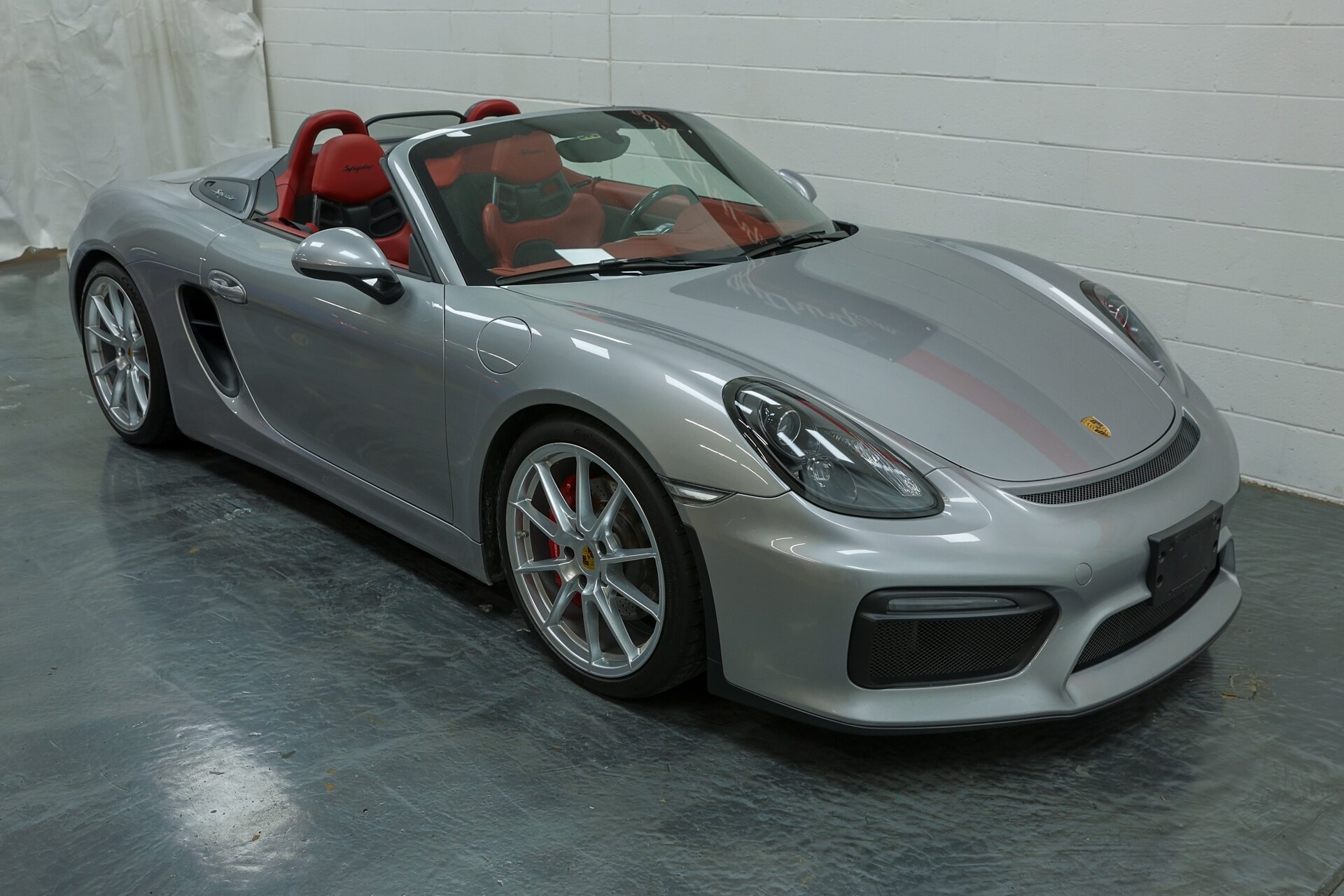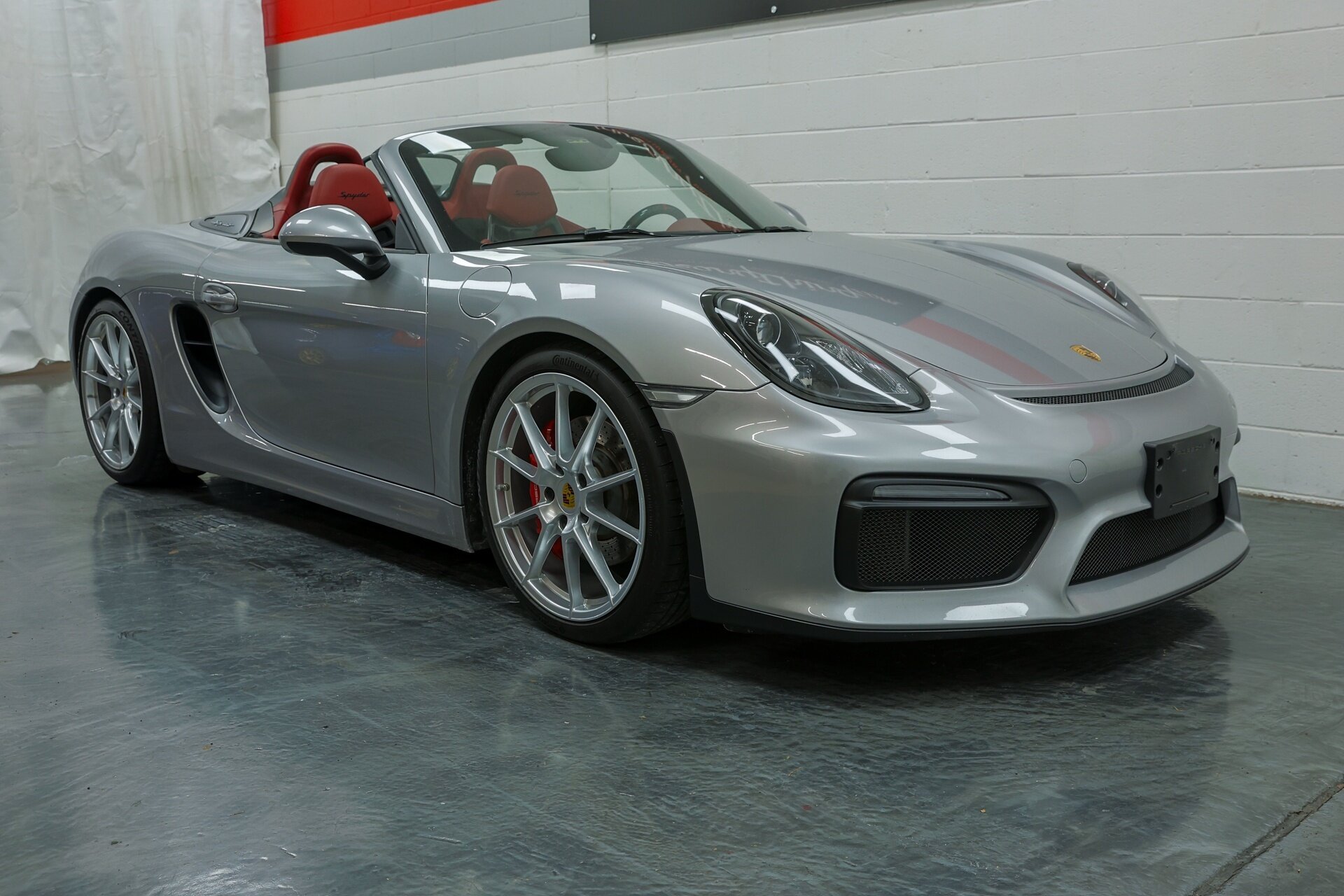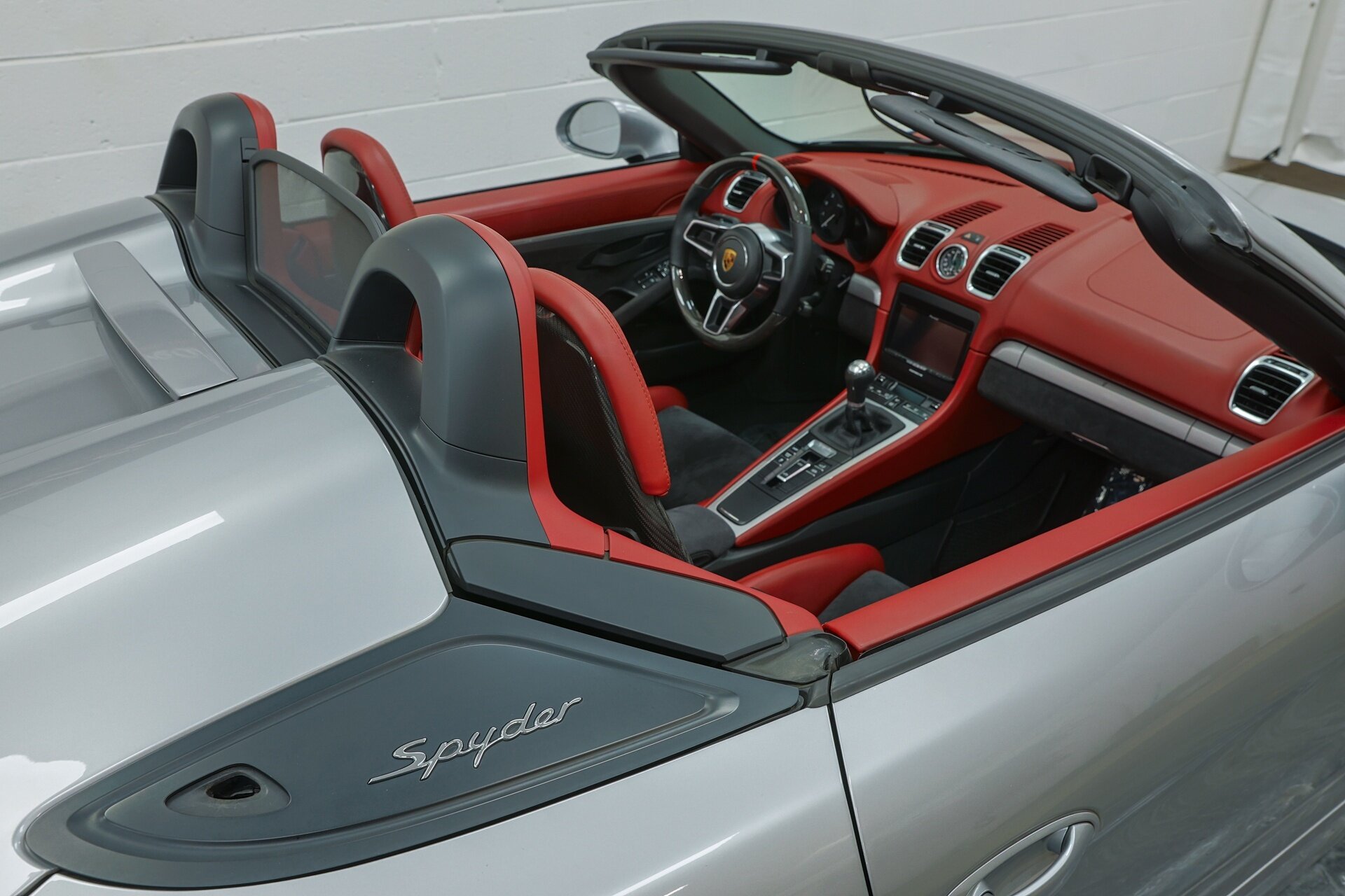 Absolutely stunning 2016 Porsche Boxster Spyder (981) with just 34649 miles . GT Silver Metallic on Red Leather, it is one of the Spyder's more attractive color combinations.