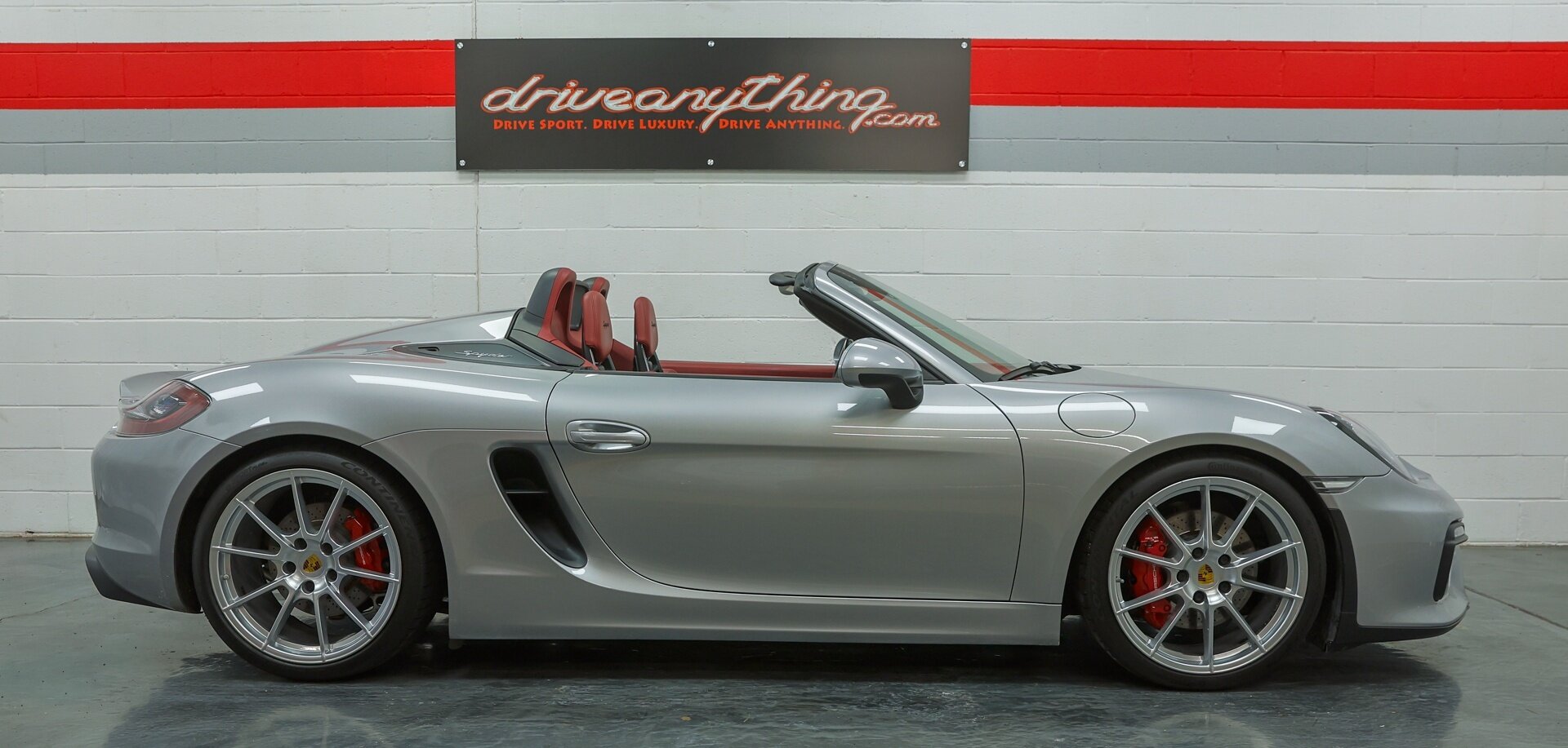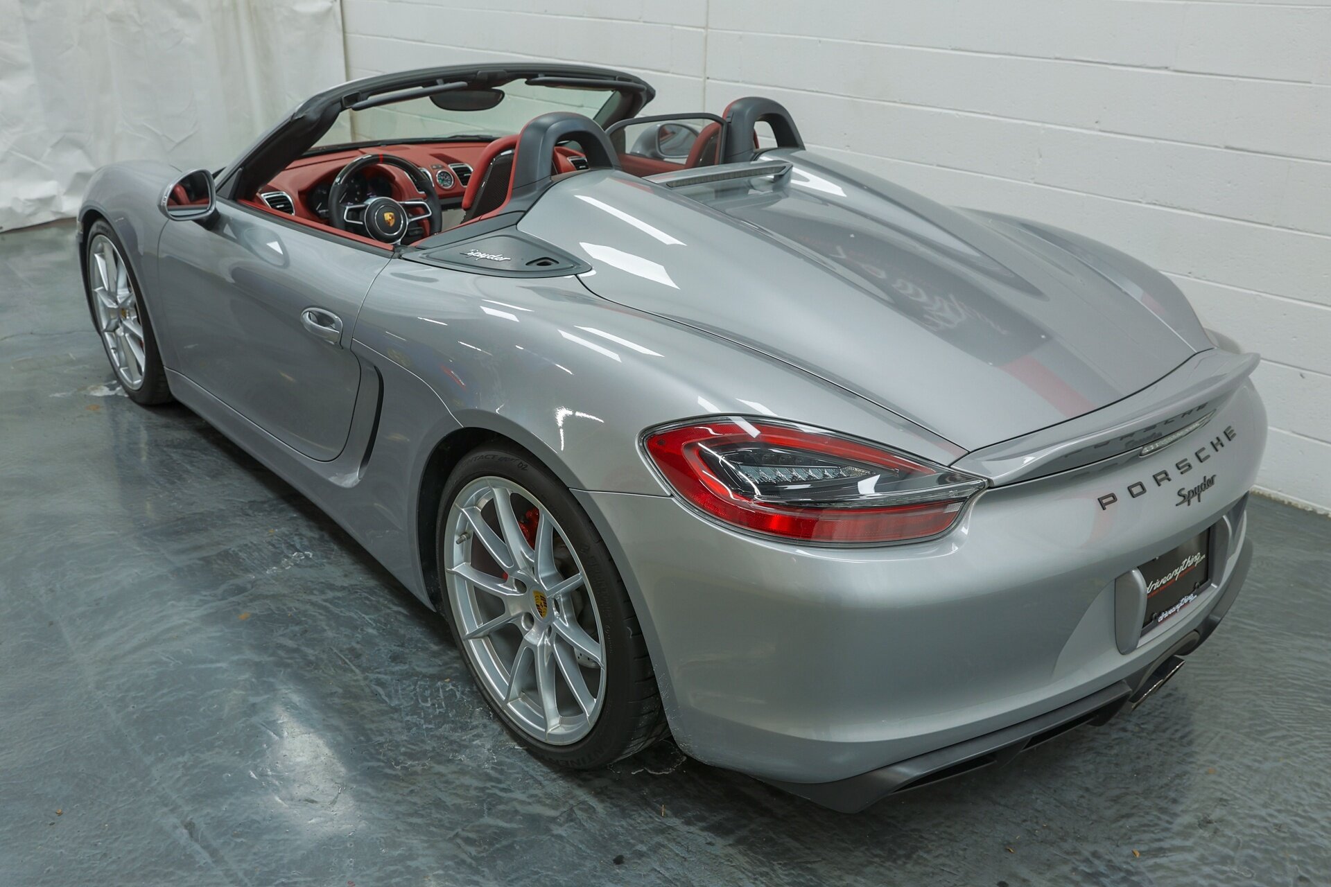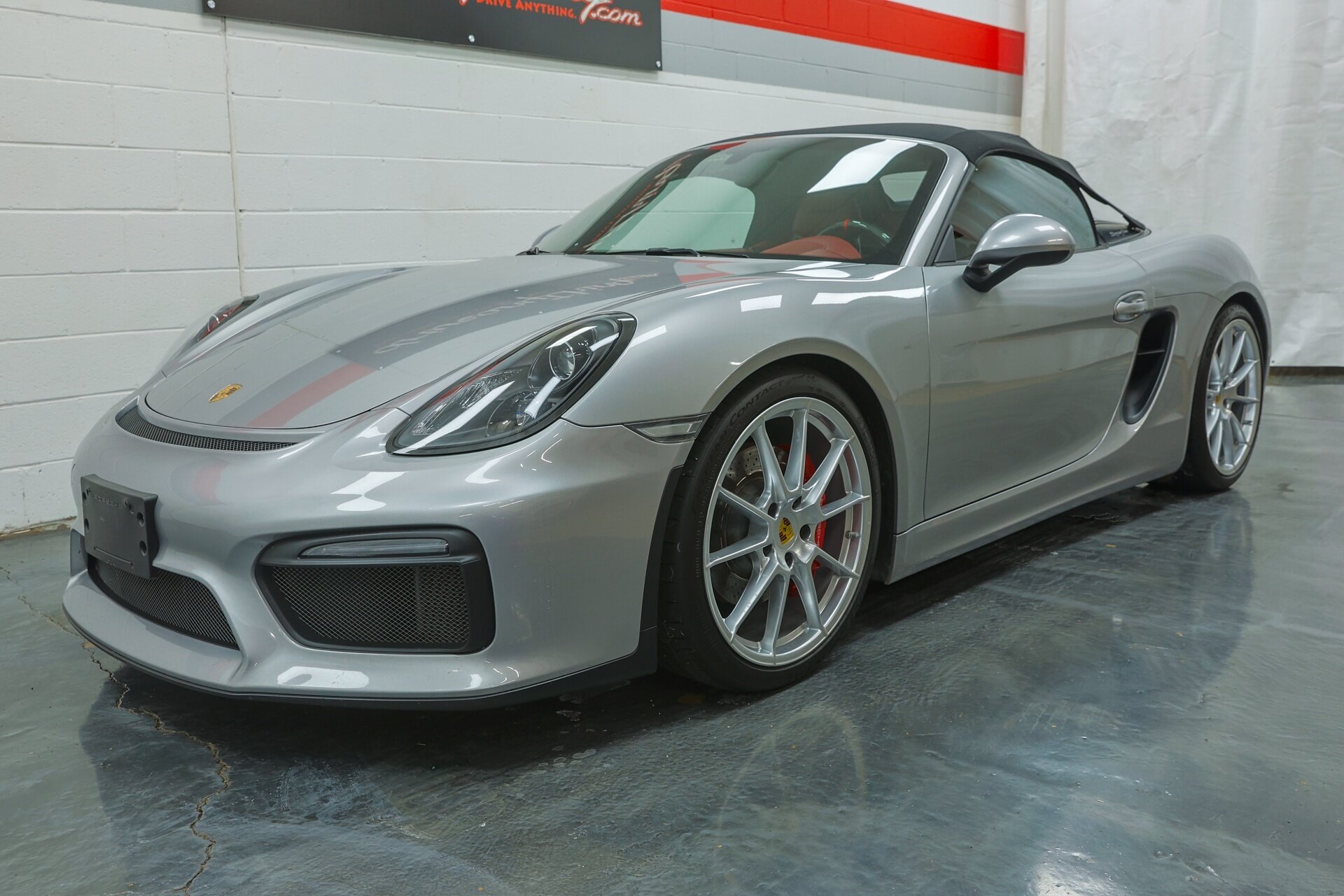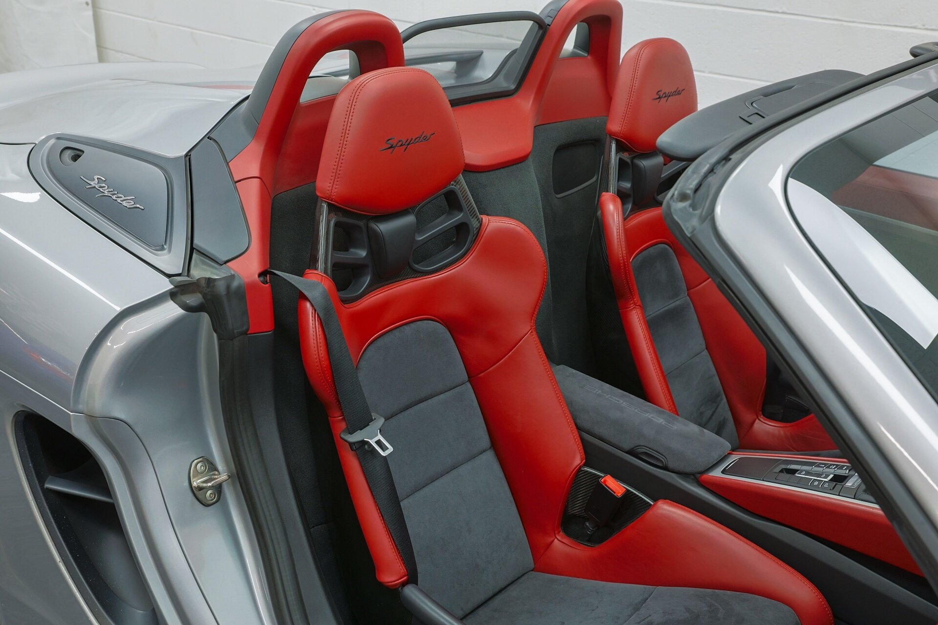 Absolutely stunning 2016 Porsche Boxster Spyder (981) with just 34649 miles . GT Silver Metallic on Red Leather, it is one of the Spyder's more attractive color combinations.