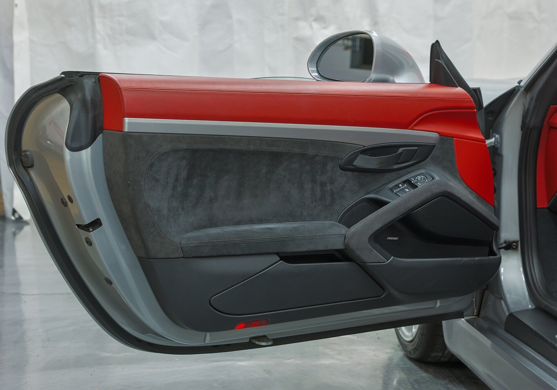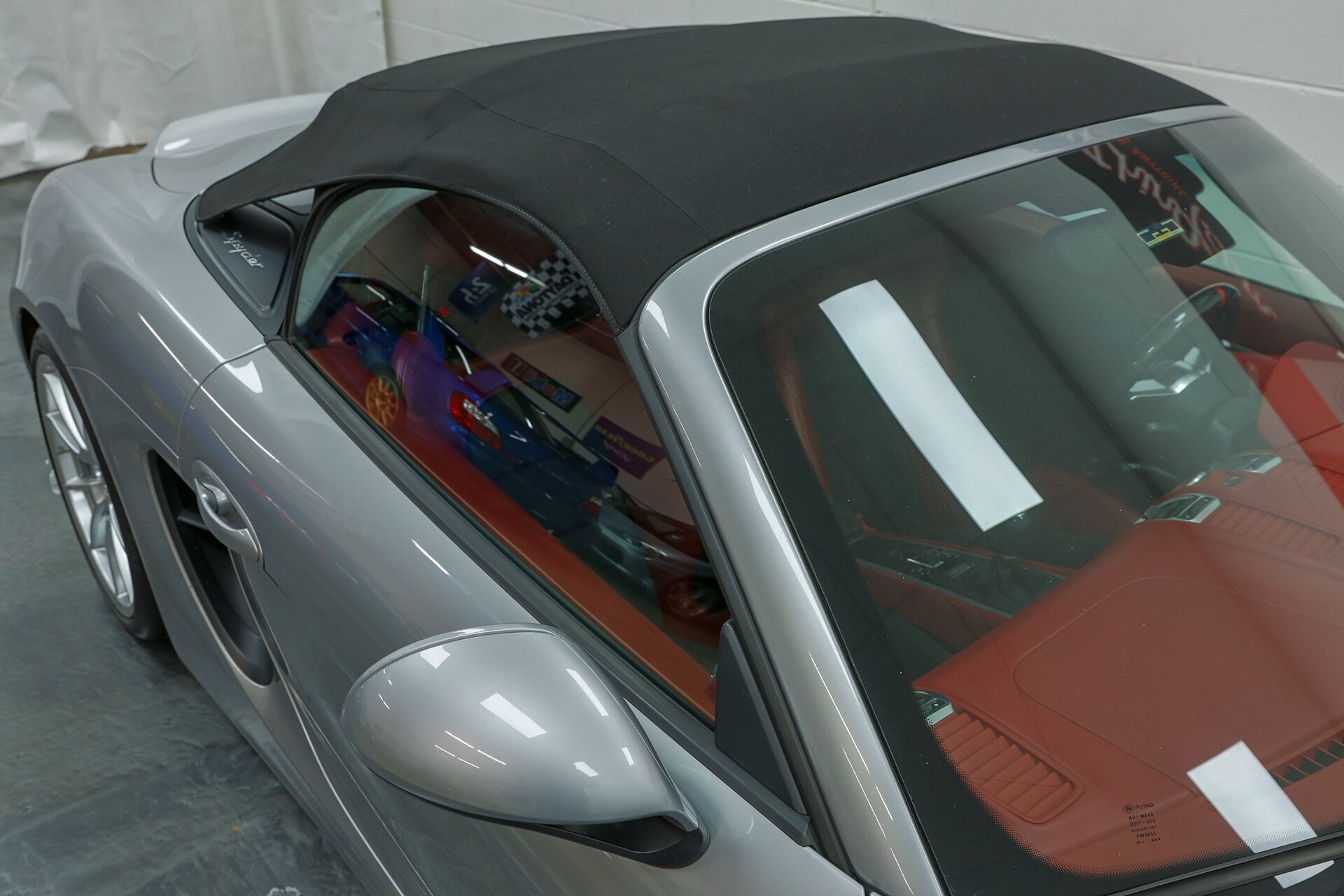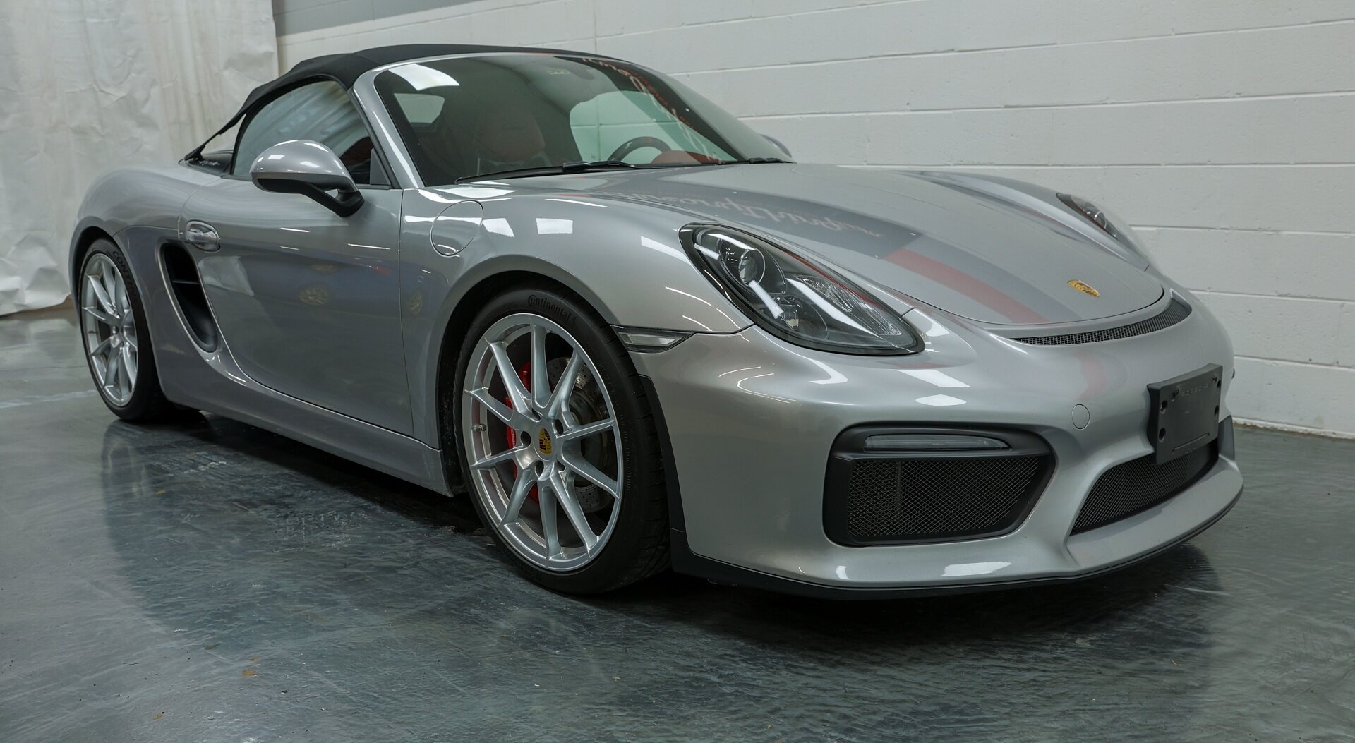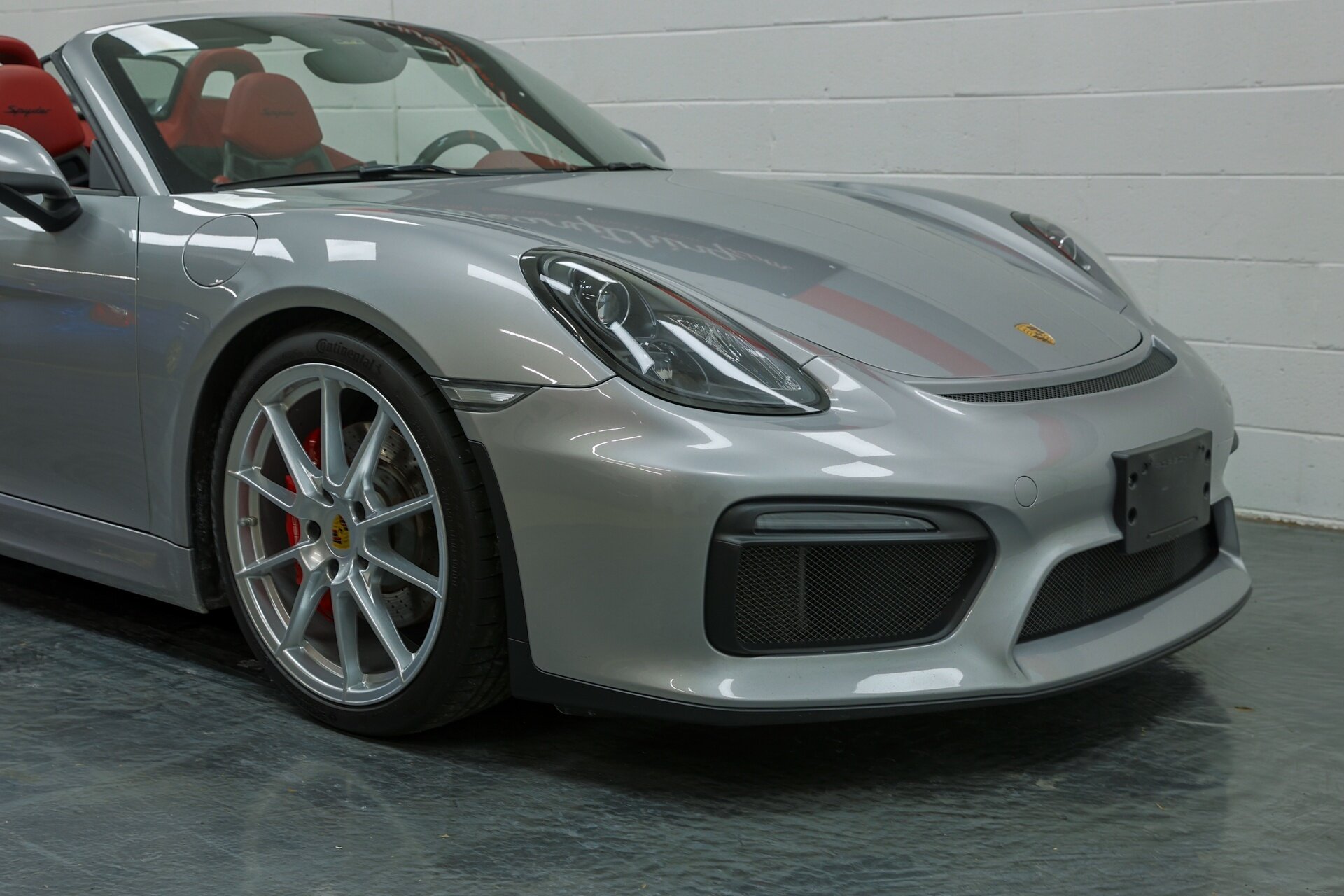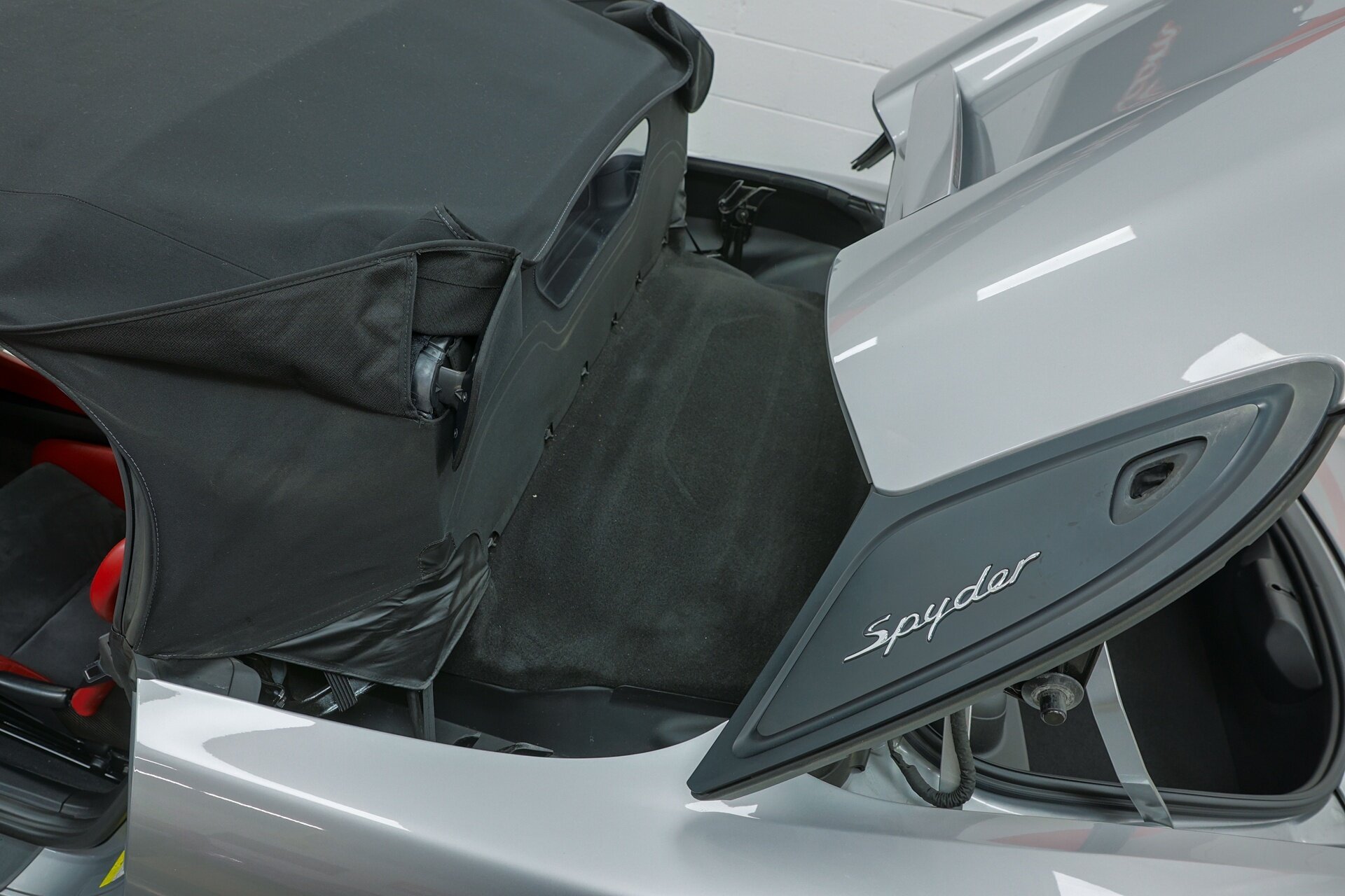 Absolutely stunning 2016 Porsche Boxster Spyder (981) with just 34649 miles . GT Silver Metallic on Red Leather, it is one of the Spyder's more attractive color combinations.
